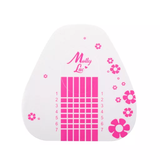 A Molly Lac Flowers sablon 50db a körmök meghosszabbításához alkalmas, oldalsó skálával és pontos segédráccsal ellátott műköröm sablon. A nagyméretű tapadó felület garantálja a forma rögzítését és a körömhöz való tökéletes tapadást.