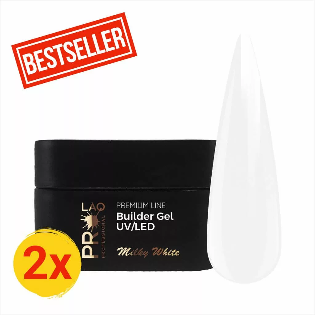 A PRO-LAQ Premium Line Egyfázisú Építő Zselé – Milky White egy különleges, kedvezményes csomagban érkezik: két darab 50 g-os építőzselét kapsz egyben, így még gazdaságosabban dolgozhatsz prémium minőségű anyaggal. A tejfehér árnyalat elegáns, letisztult és természetes hatást biztosít, így tökéletes választás babyboomer körmök, francia végek vagy lágy, nude hatású építések alapjához.