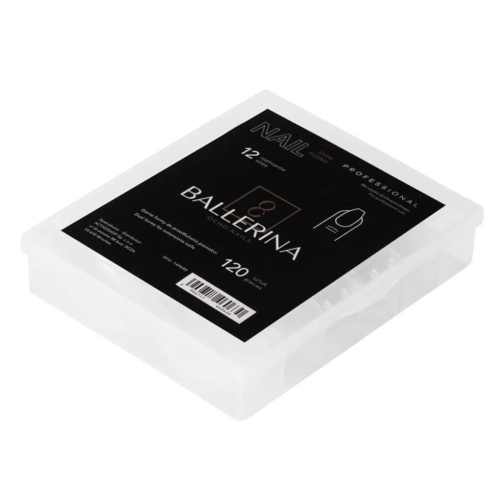A Reverse Tip Ballerina csomag 120 db átlátszó dual form tip-et tartalmaz 12 különböző méretben, méretenként 10 darabot. Ez elegendő mennyiség hosszabb ideig tartó szalonhasználatra, és a 12 méret biztosítja, hogy minden vendég körömméretéhez megtaláld a tökéletesen illő formát.