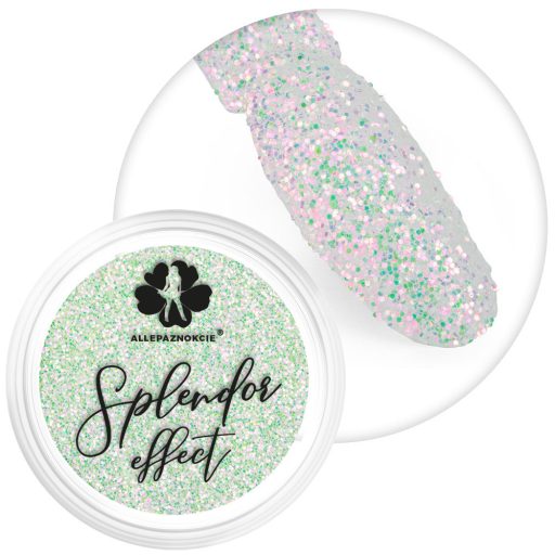 Rendkívül egyszerű és meglepően gyors körömdíszítési forma. A Splendor effect dörzsölésével tökéletes felületet hozhatsz létre, vagy megszórva fagyos hatást kelthetsz vele! Az effect por óriási előnye a könnyű elkészíthetőség! Bármilyen alapozó színen fenomenálisan néz ki. Használd, ha nincs időd bonyolult mintázatokra, vagy ha határozott csillogást vársz a manikűrtől.